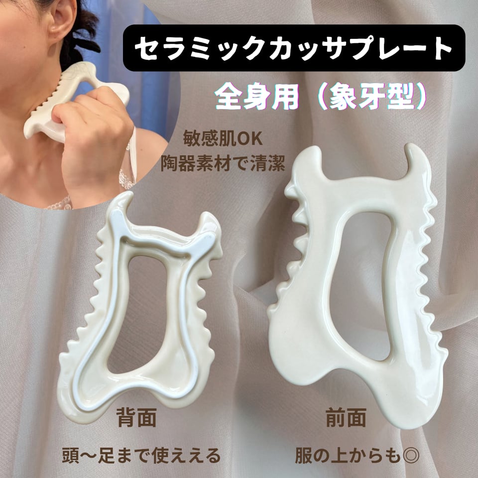 セラミック全身カッサプレート象牙型(大:W145×H96×D15mm)